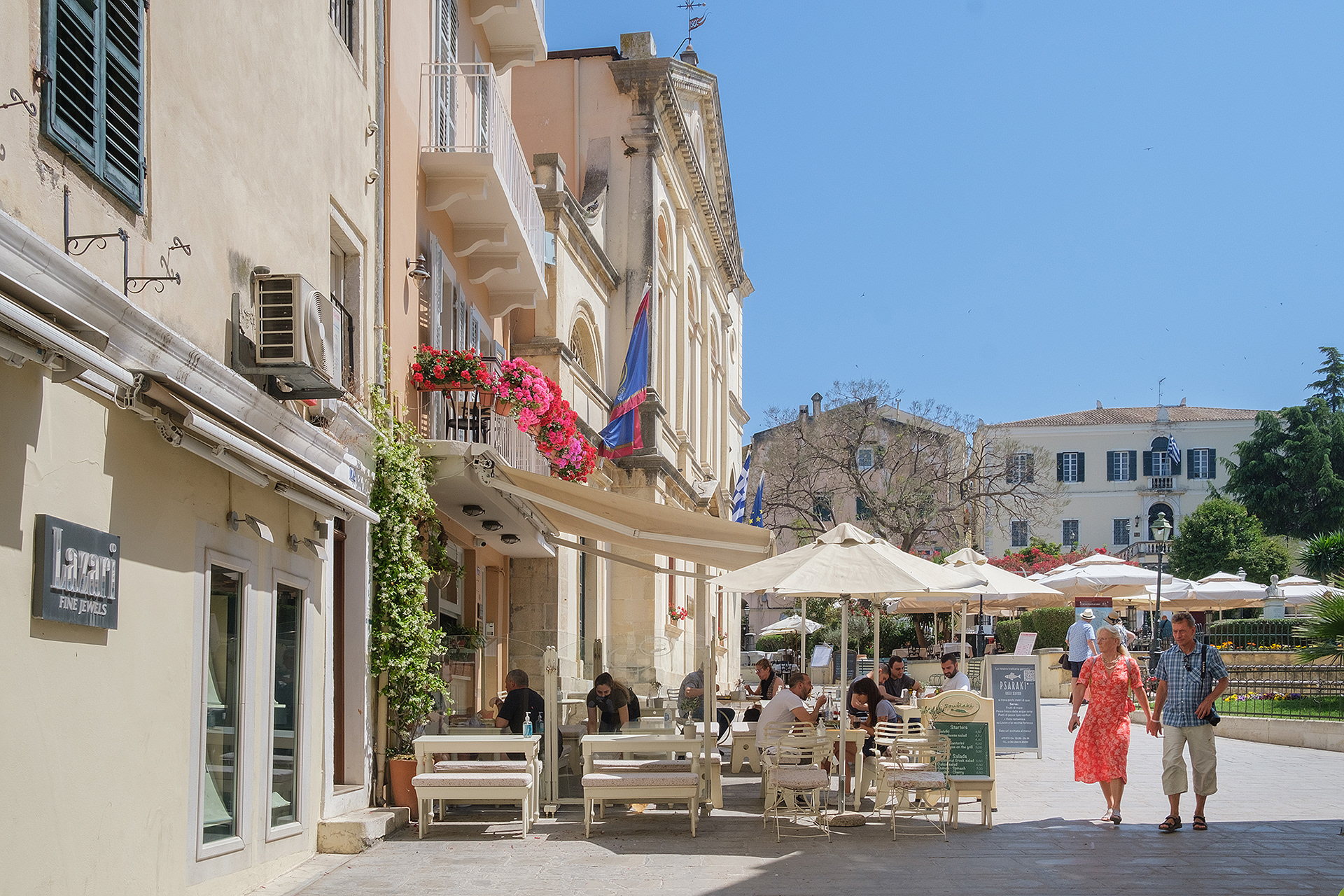 If you've ever travelled to Greece you will undoubtedly have a certain image in your mind of typical Greek towns and villages. Whatever you're expecting, Corfu is not that. In fact, if you were dropped in the middle of the Old Town blindfolded and didn't know where you were, you would be much more likely to guess you're in Italy than in Greece. The Venetian heritage buildings, the window blinds, the attention to little charming details, the motorbikes, even the laundry hanging from the windows and across the streets, it all screams Italy. But let's say somehow you find out you are somewhere else. You start looking for clues - most locals speak English without an accent, so that's no help. Most people the locals speak to are foreigners, so that doesn't help either, no native tongue to be heard. English, German, some French, Dutch, some Northern European influences ... oh wait, there is a cruise ship docked, that explains it. Then you notice the food and finally some clues appear - in between the burgers, pizza and gelatos, you stumble upon a souvlaki, a feta cheese pie and there you have it - a Greek salad. And although it may have taken you forever to guess where you are, the vibrant architectural variety left over by the multicultural inhabitants of the island over the years give Corfu a distinctive mark which you will not forget.