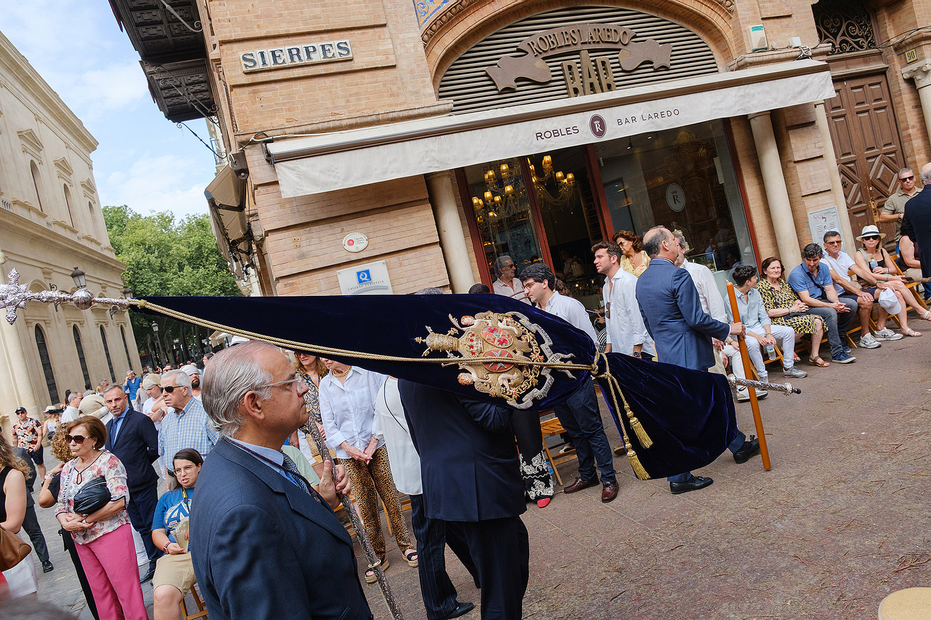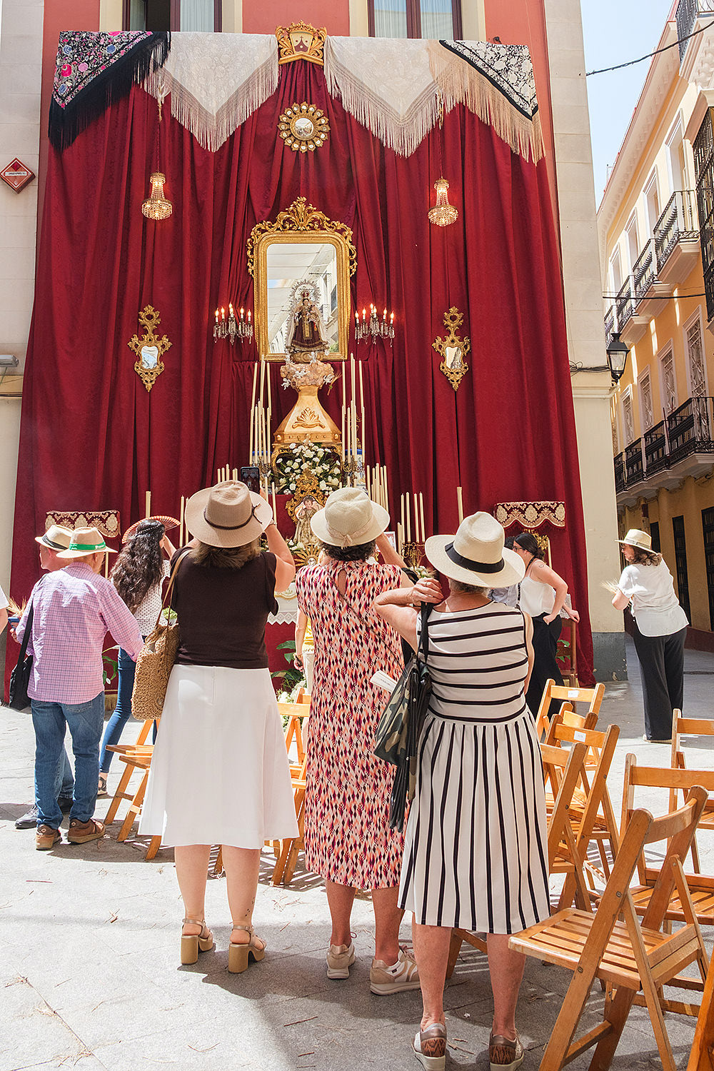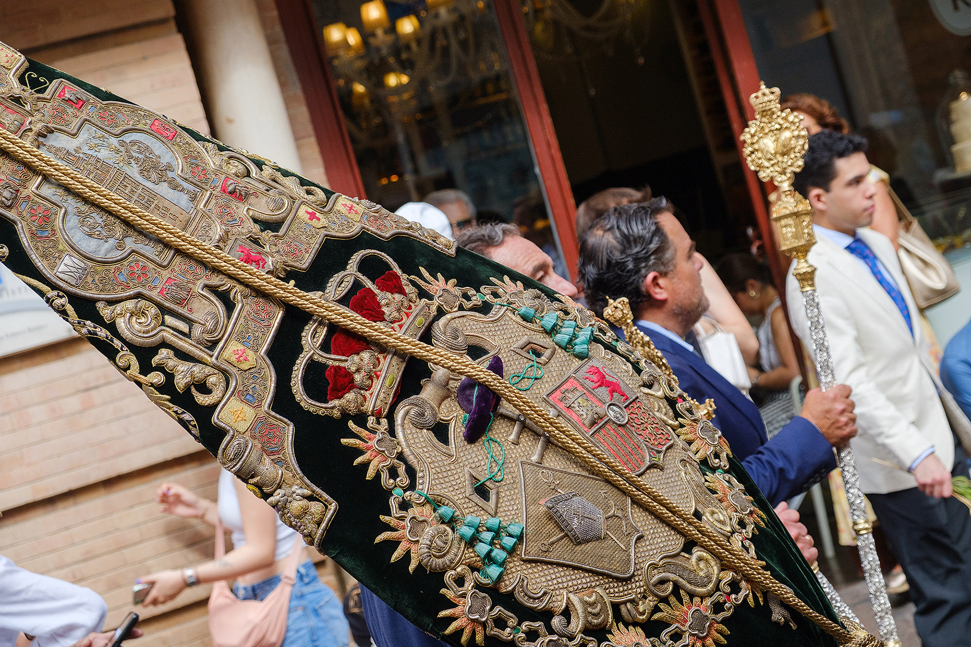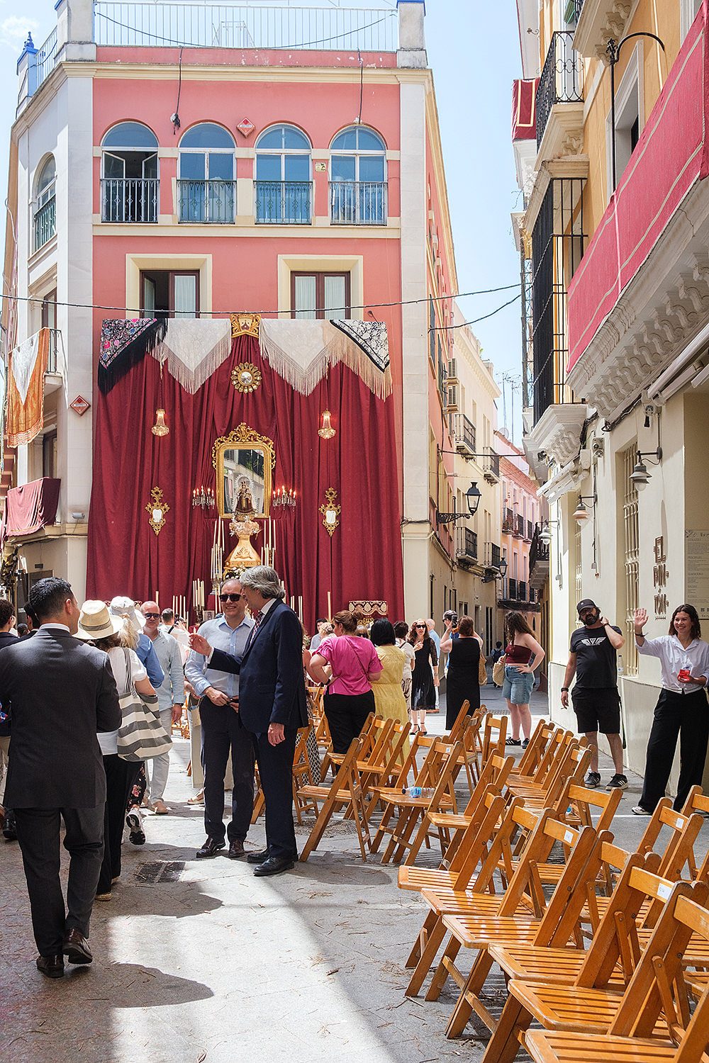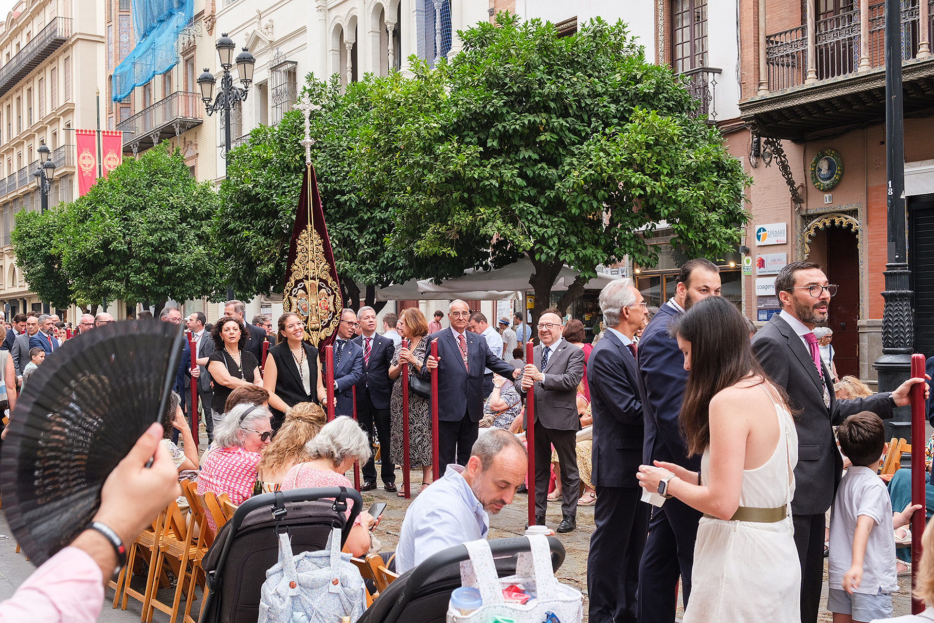 Although not as big as the Easter procession, the Corpus Christi one in Seville is still a major event. The fresh rosemary aroma fills the air and mixes with the chatter of the spectators as different brotherhoods glide through the streets with their banners and saints. The city is decorated to celebrate in red velvet and gold. Beautifully crafted street altars adorn passages, shop windows and corners. Everyone is dressed in full formal attire despite the 40+ degree heat and the procession participants do not seem to be breaking even a drop of sweat. I am convinced they are a different species which does not feel the heat the same way normal humans do. My eyes kept wandering to the nearby residents who chose to watch the procession from their terraces. The quick access to water and air conditioning must have been really handy. As impressive as the full procession and the city decoration was, the post procession vibe of the whole community coming together in tiny corners, bars and cafés to chat and mingle, was my favourite part. After all, who can resist the idea of a beer, a fruity wine or the tastiest fresh orange juice in June?
