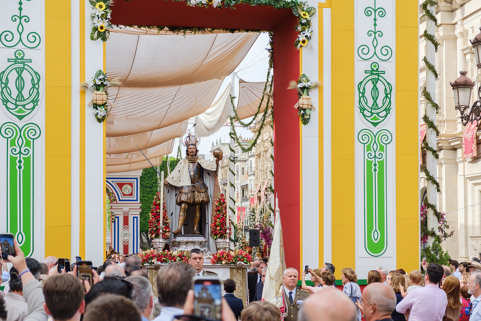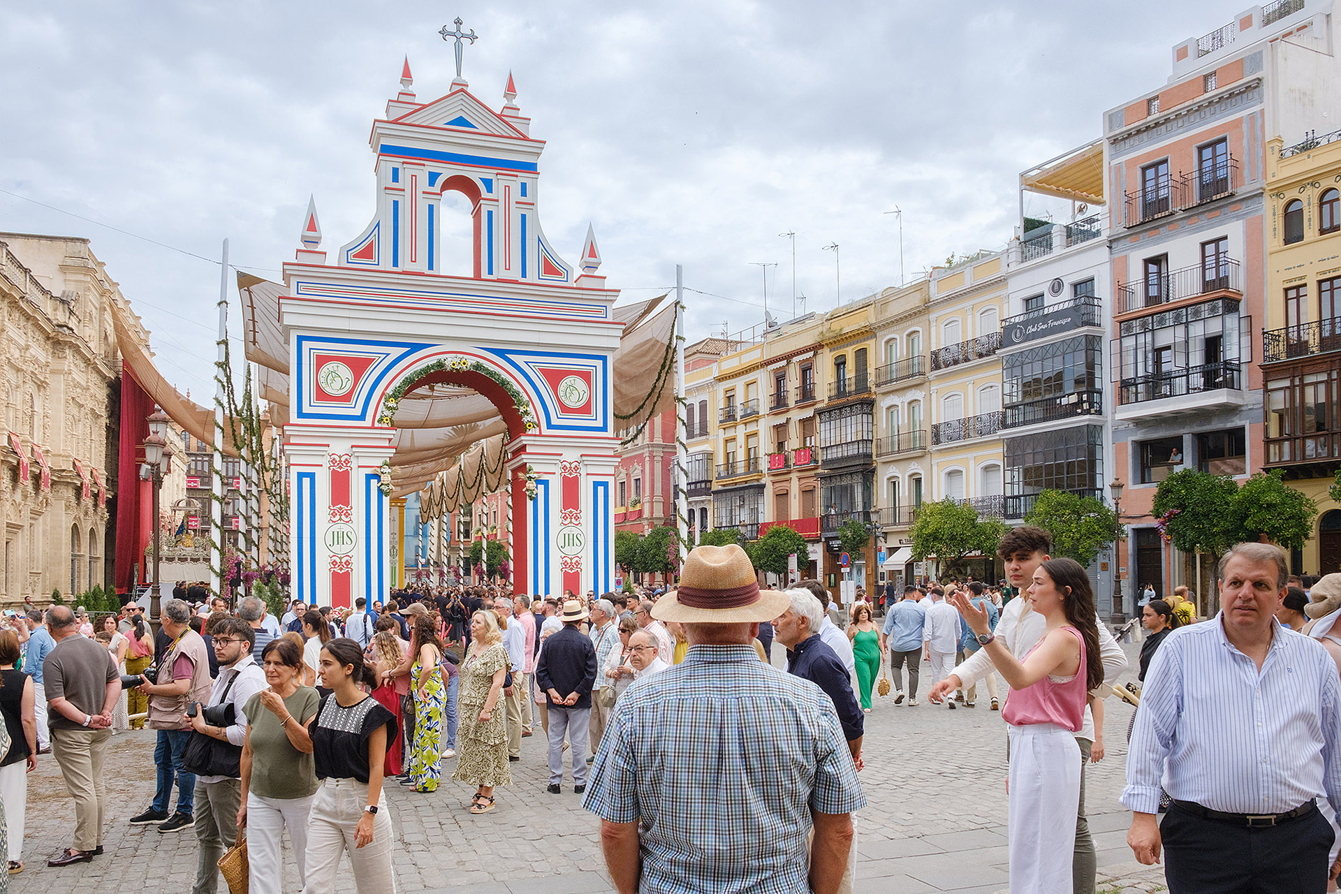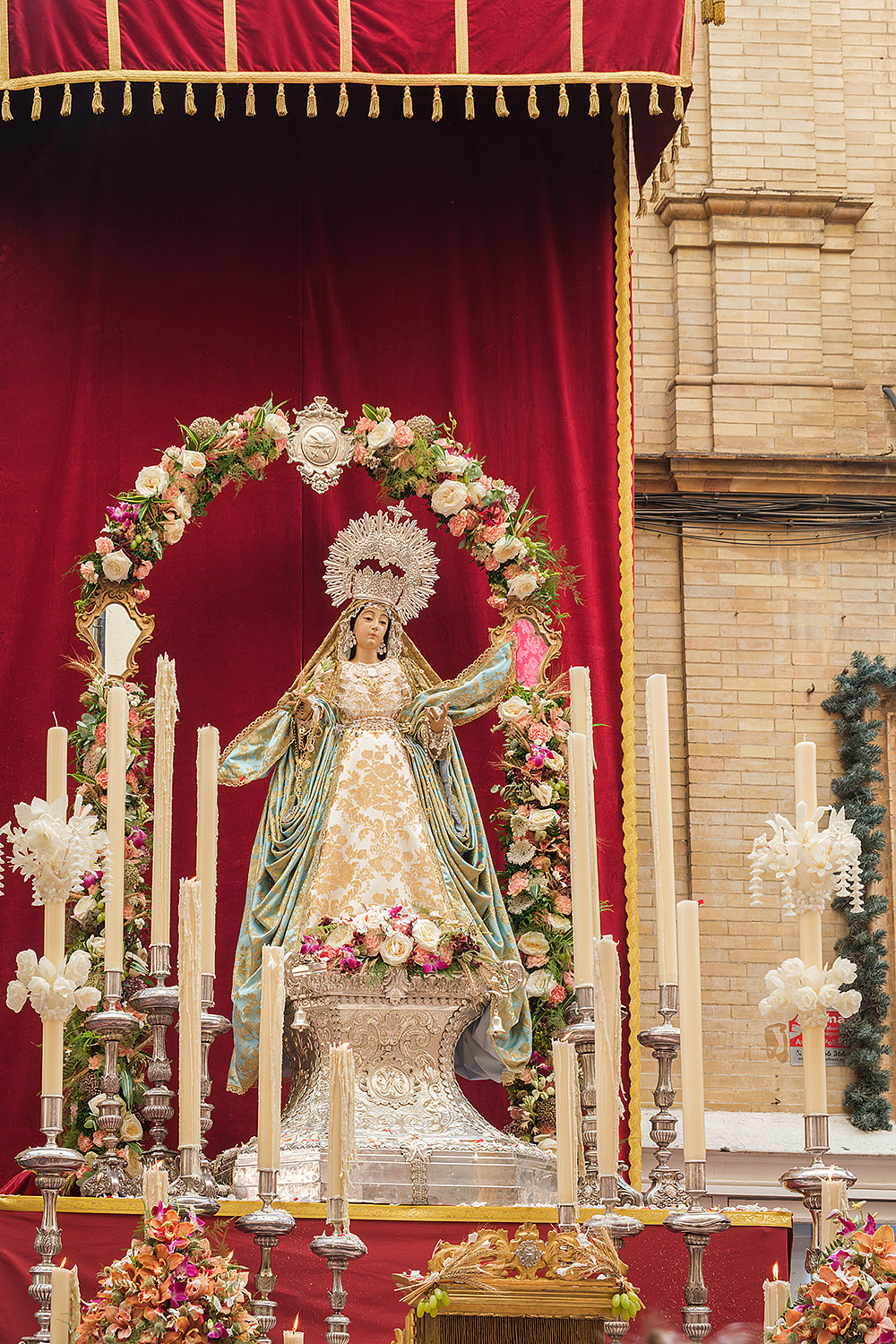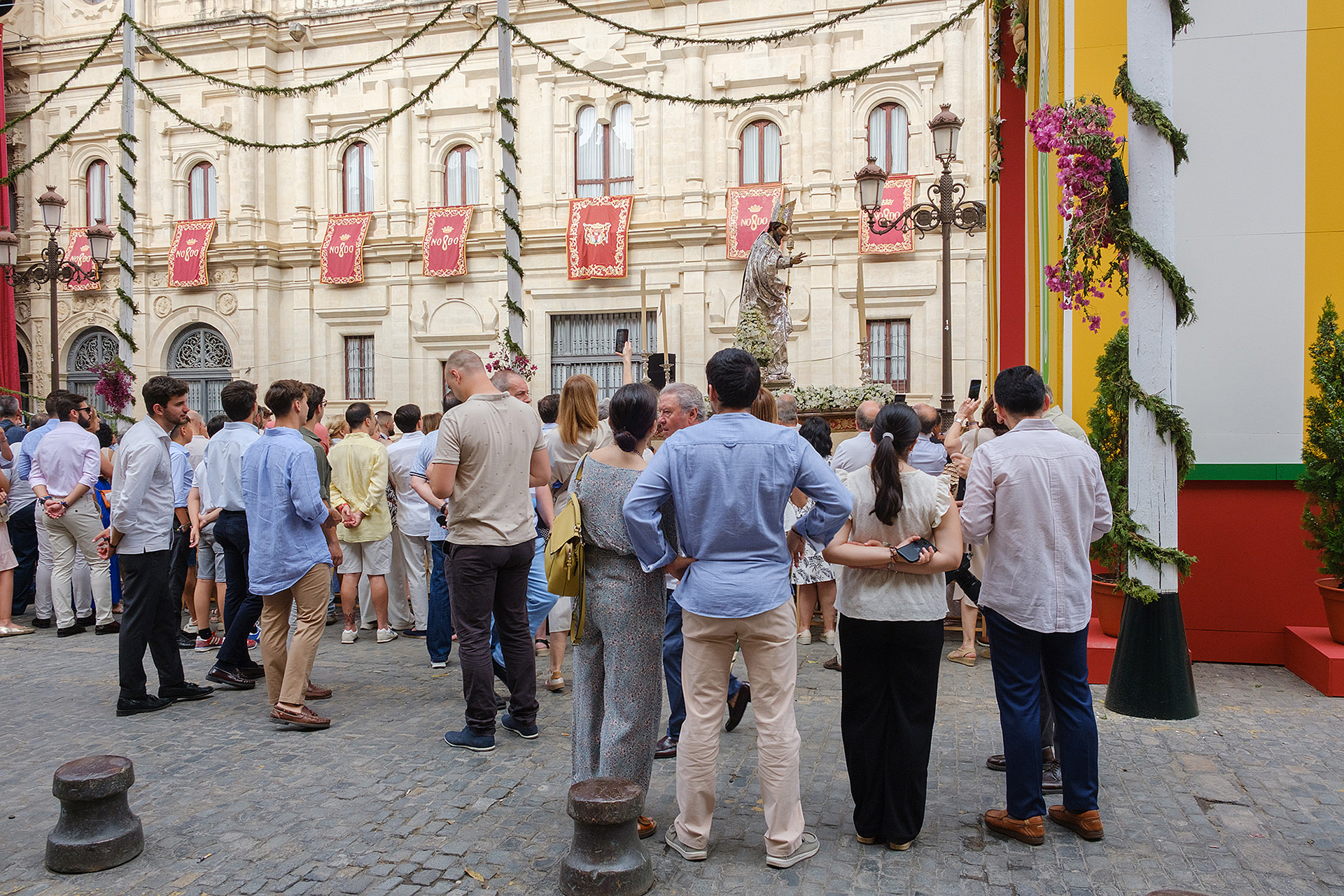 Although not as big as the Easter procession, the Corpus Christi one in Seville is still a major event. The fresh rosemary aroma fills the air and mixes with the chatter of the spectators as different brotherhoods glide through the streets with their banners and saints. The city is decorated to celebrate in red velvet and gold. Beautifully crafted street altars adorn passages, shop windows and corners. Everyone is dressed in full formal attire despite the 40+ degree heat and the procession participants do not seem to be breaking even a drop of sweat. I am convinced they are a different species which does not feel the heat the same way normal humans do. My eyes kept wandering to the nearby residents who chose to watch the procession from their terraces. The quick access to water and air conditioning must have been really handy. As impressive as the full procession and the city decoration was, the post procession vibe of the whole community coming together in tiny corners, bars and cafés to chat and mingle, was my favourite part. After all, who can resist the idea of a beer, a fruity wine or the tastiest fresh orange juice in June?