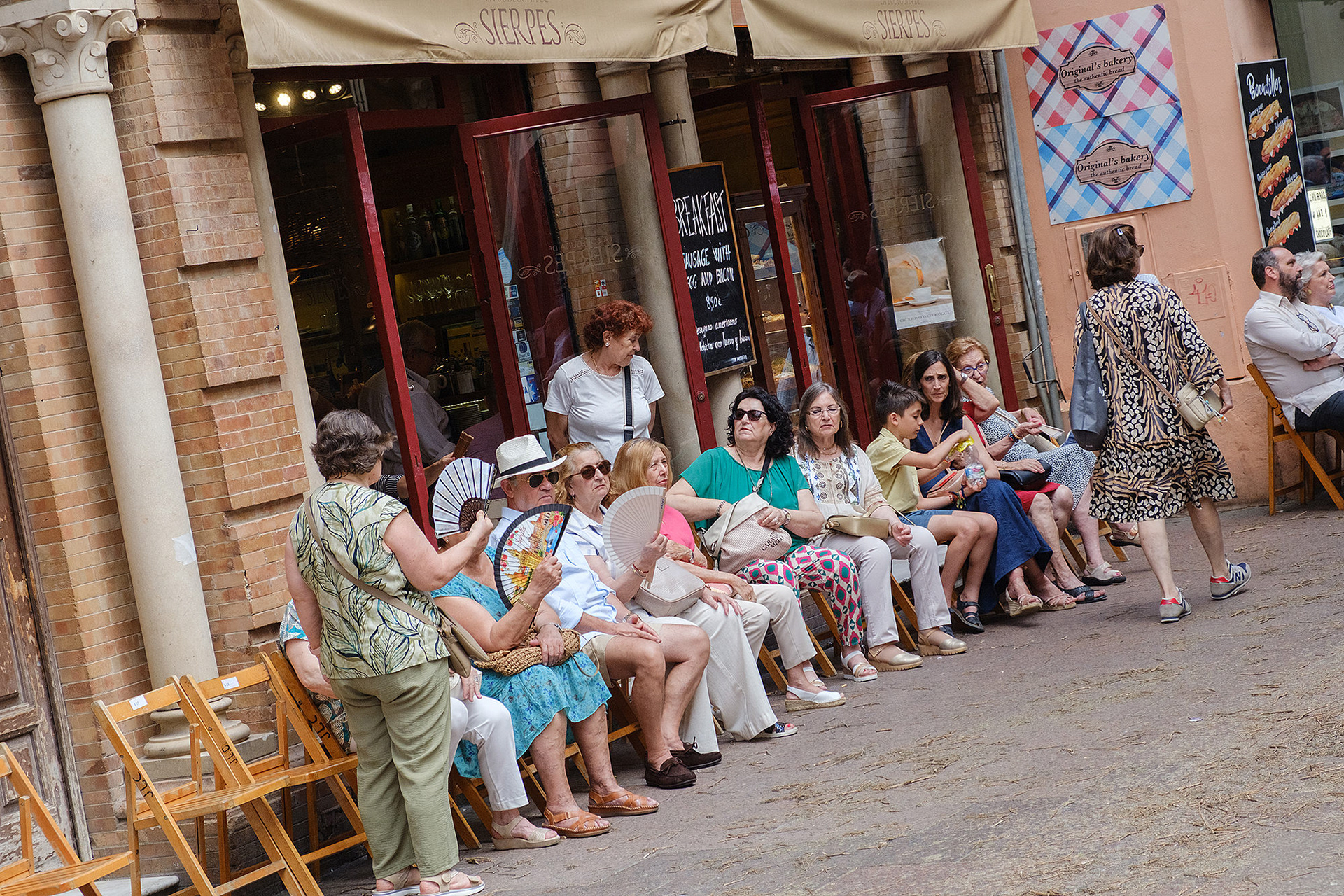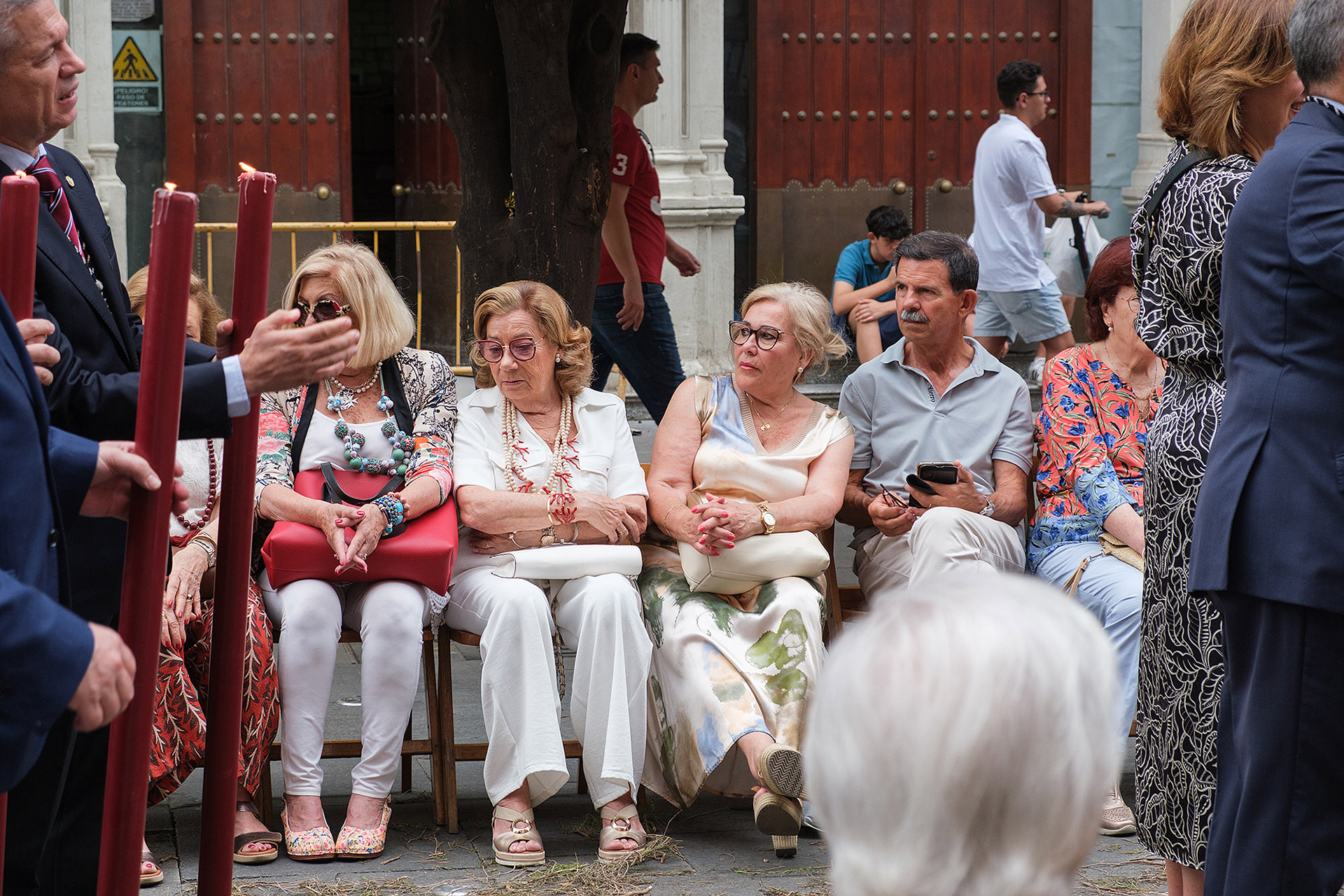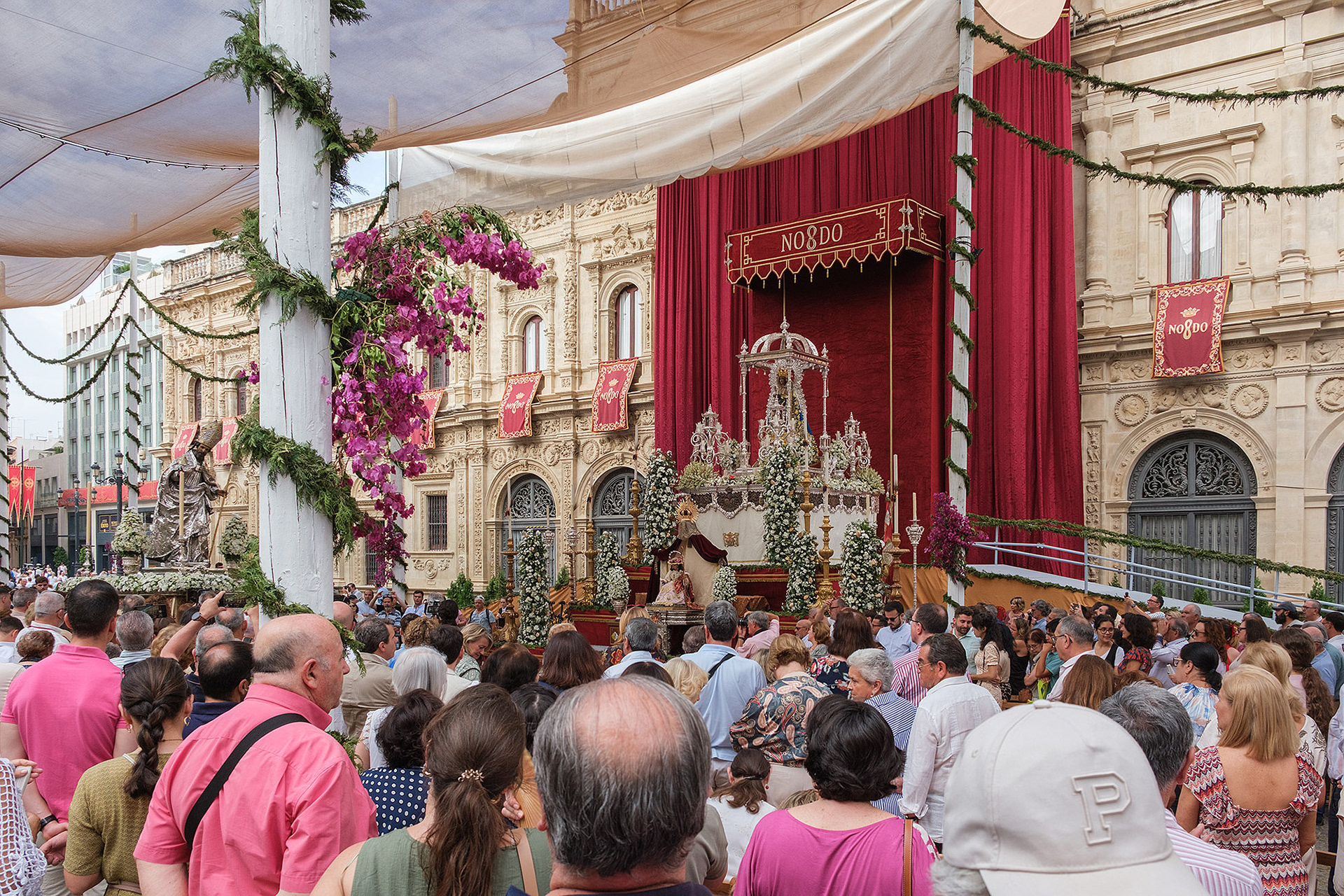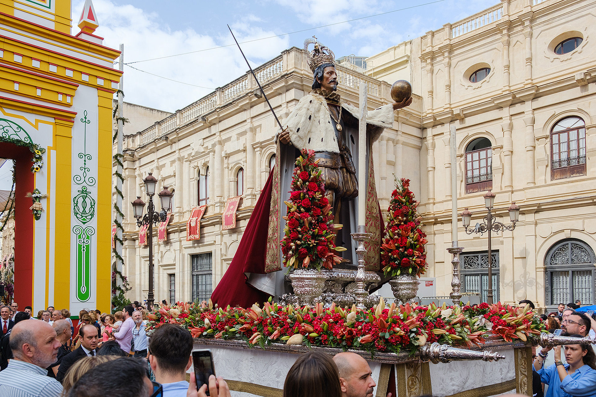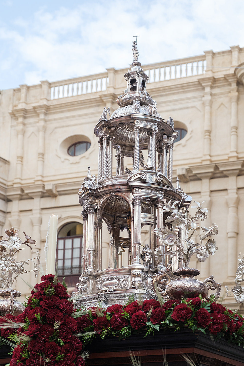 Although not as big as the Easter procession, the Corpus Christi one in Seville is still a major event. The fresh rosemary aroma fills the air and mixes with the chatter of the spectators as different brotherhoods glide through the streets with their banners and saints. The city is decorated to celebrate in red velvet and gold. Beautifully crafted street altars adorn passages, shop windows and corners. Everyone is dressed in full formal attire despite the 40+ degree heat and the procession participants do not seem to be breaking even a drop of sweat. I am convinced they are a different species which does not feel the heat the same way normal humans do. My eyes kept wandering to the nearby residents who chose to watch the procession from their terraces. The quick access to water and air conditioning must have been really handy. As impressive as the full procession and the city decoration was, the post procession vibe of the whole community coming together in tiny corners, bars and cafés to chat and mingle, was my favourite part. After all, who can resist the idea of a beer, a fruity wine or the tastiest fresh orange juice in June?