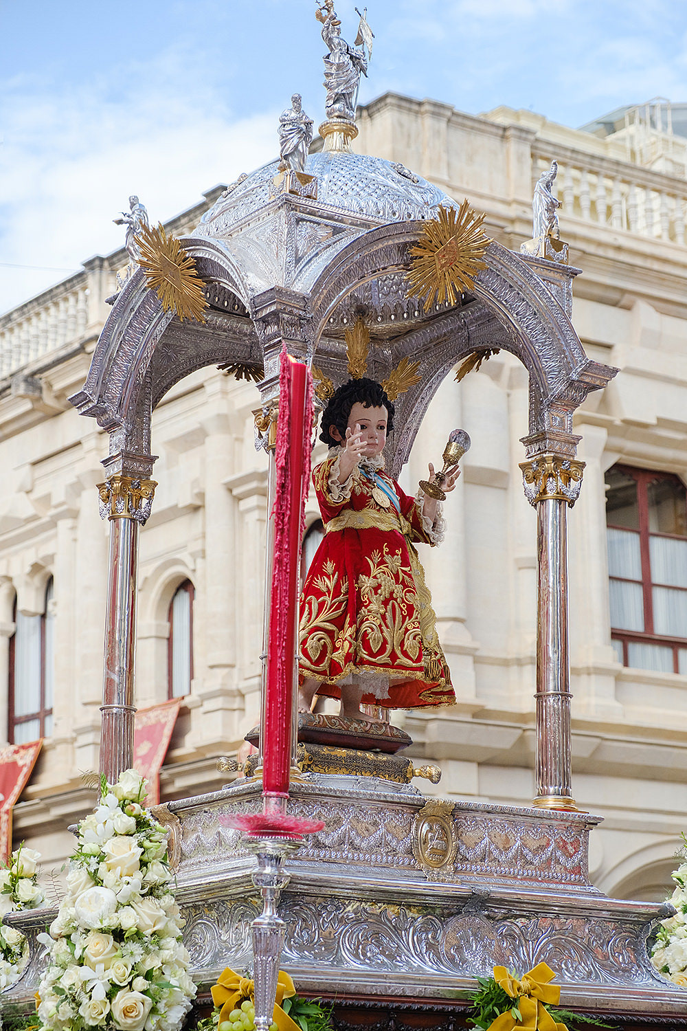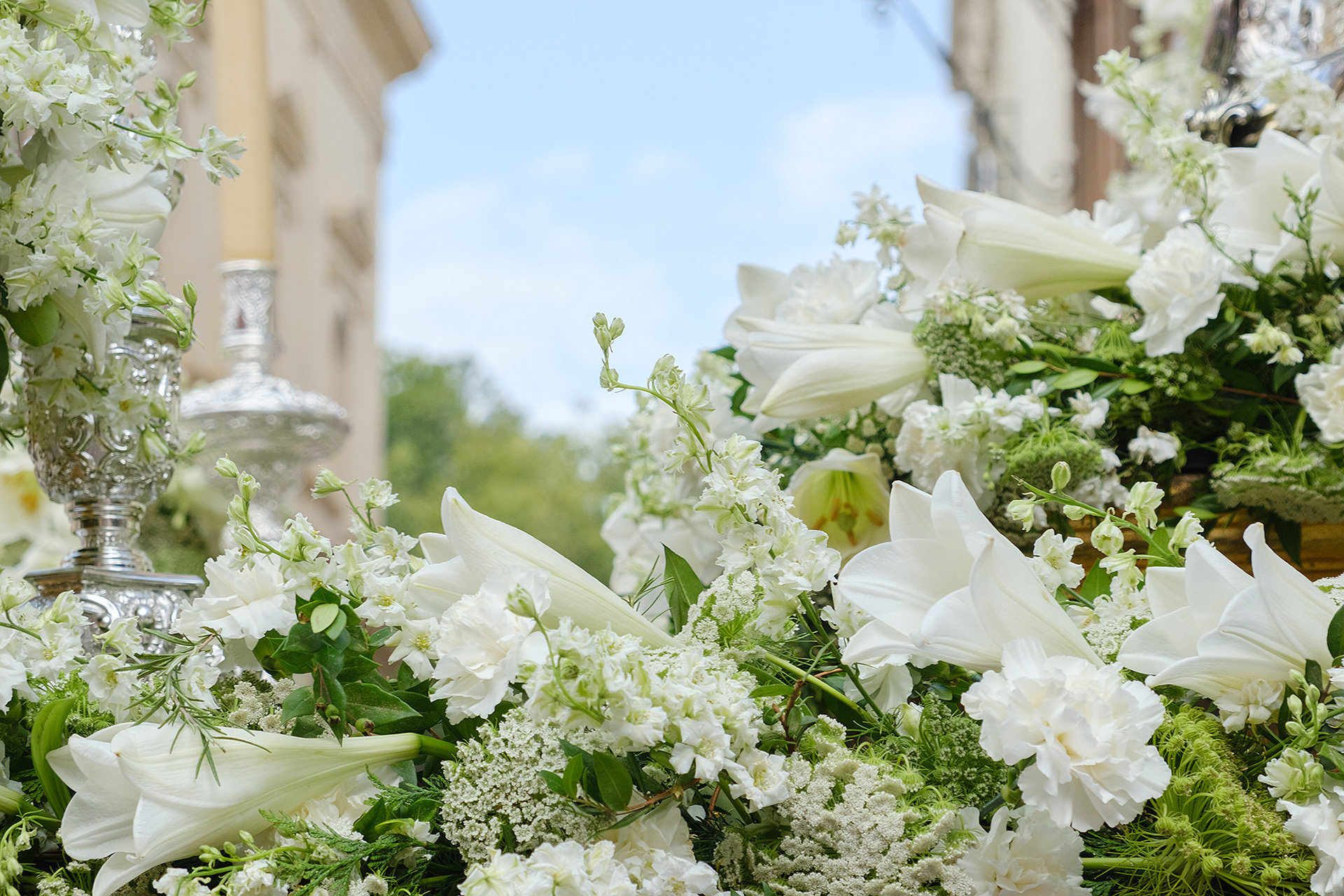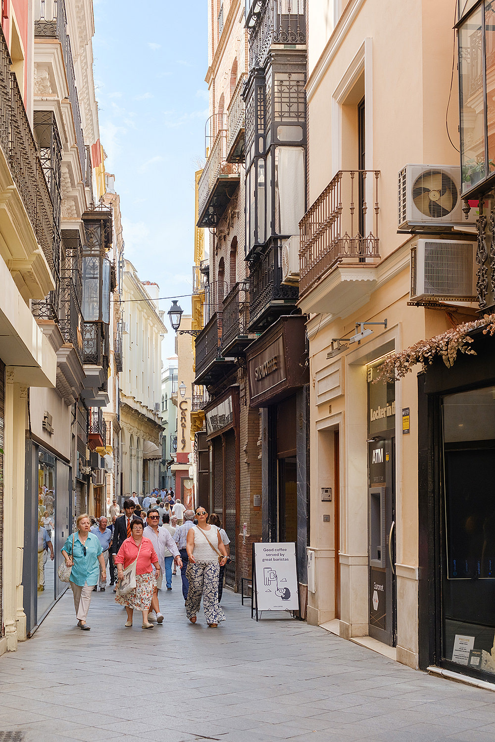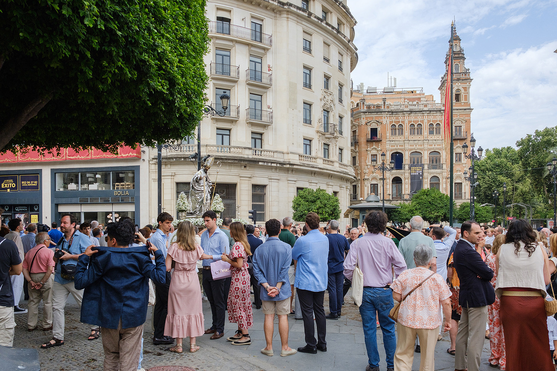 Although not as big as the Easter procession, the Corpus Christi one in Seville is still a major event. The fresh rosemary aroma fills the air and mixes with the chatter of the spectators as different brotherhoods glide through the streets with their banners and saints. The city is decorated to celebrate in red velvet and gold. Beautifully crafted street altars adorn passages, shop windows and corners. Everyone is dressed in full formal attire despite the 40+ degree heat and the procession participants do not seem to be breaking even a drop of sweat. I am convinced they are a different species which does not feel the heat the same way normal humans do. My eyes kept wandering to the nearby residents who chose to watch the procession from their terraces. The quick access to water and air conditioning must have been really handy. As impressive as the full procession and the city decoration was, the post procession vibe of the whole community coming together in tiny corners, bars and cafés to chat and mingle, was my favourite part. After all, who can resist the idea of a beer, a fruity wine or the tastiest fresh orange juice in June?